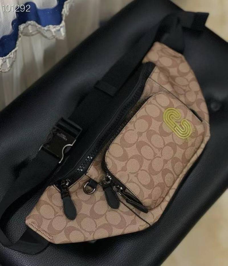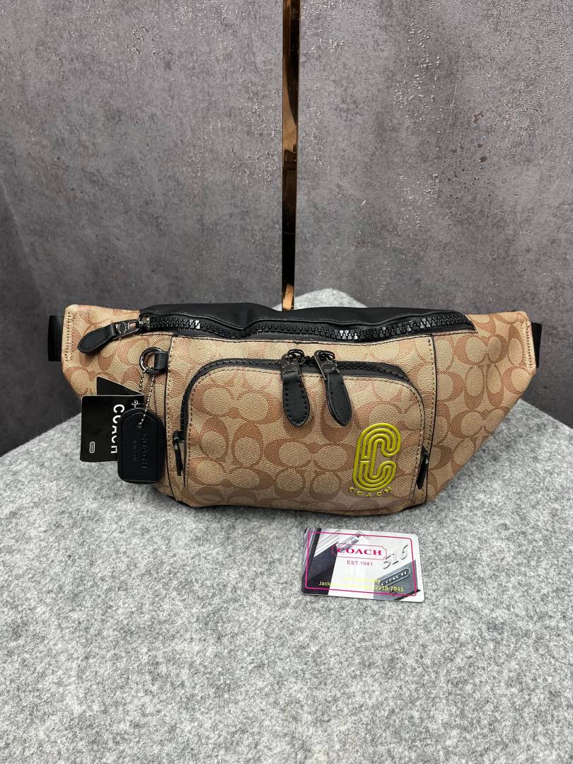 • Coach_Unisex_Waist_Pouch_Track_Belt_Bag_Signature_Canvas_Gunmetal_Lock_With_Dust_Bag_(G1130_Coffee)