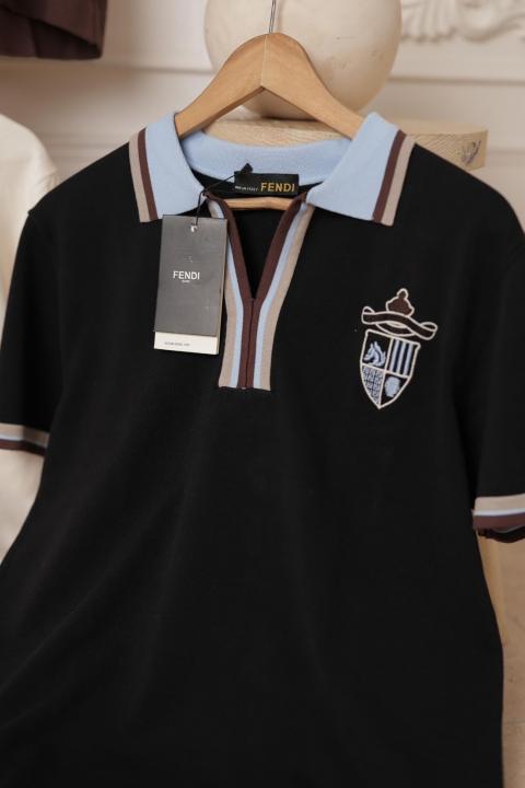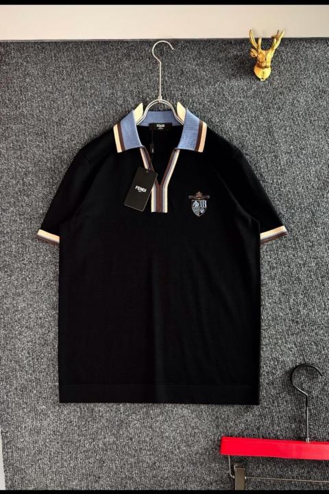 Fend i Black Imported Polo Tshirt Knitted Lycra