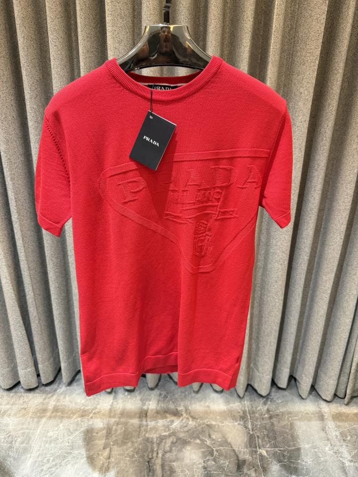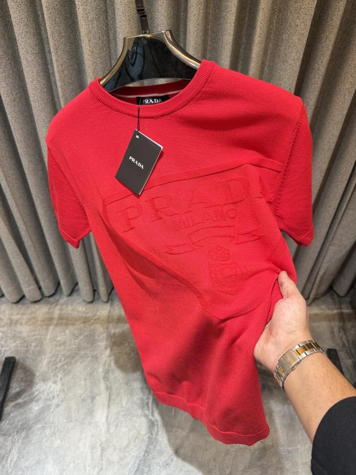 Prad a Red Round neck Knitted lycra Tshirt